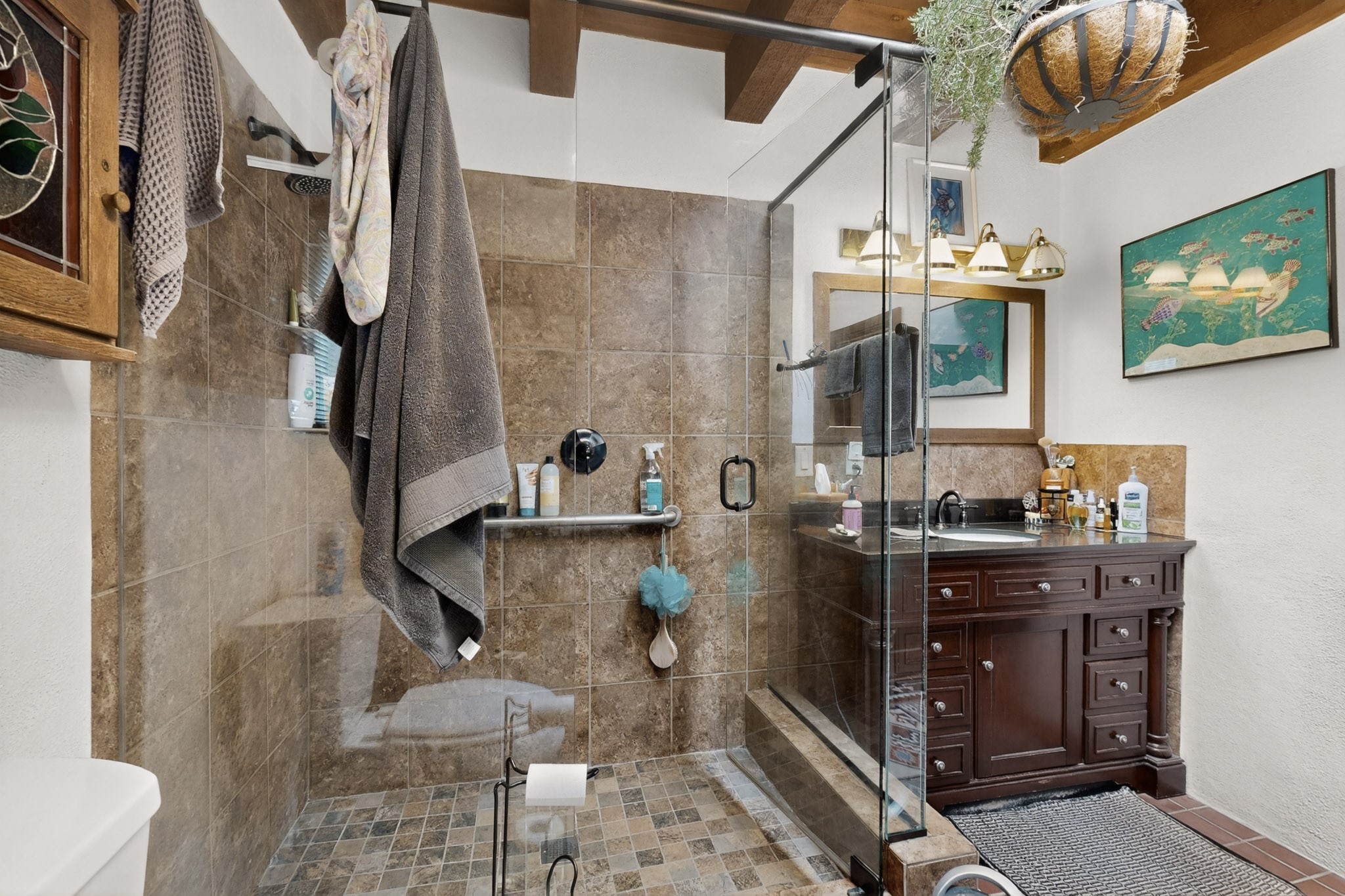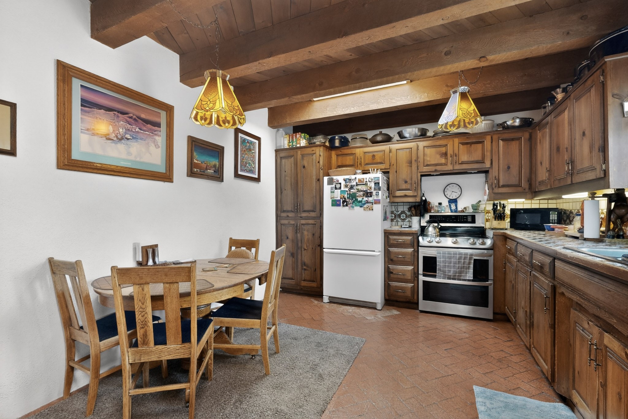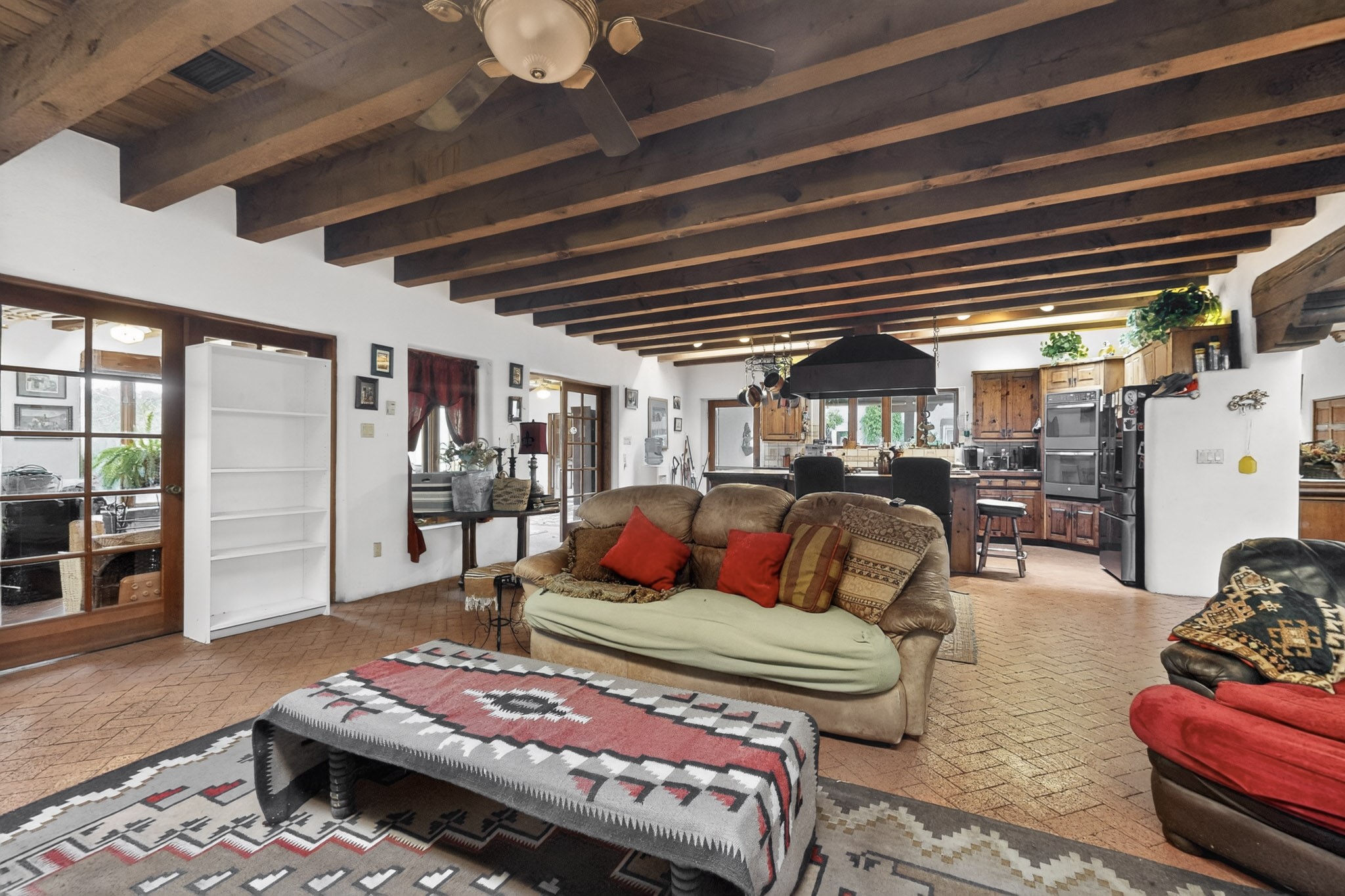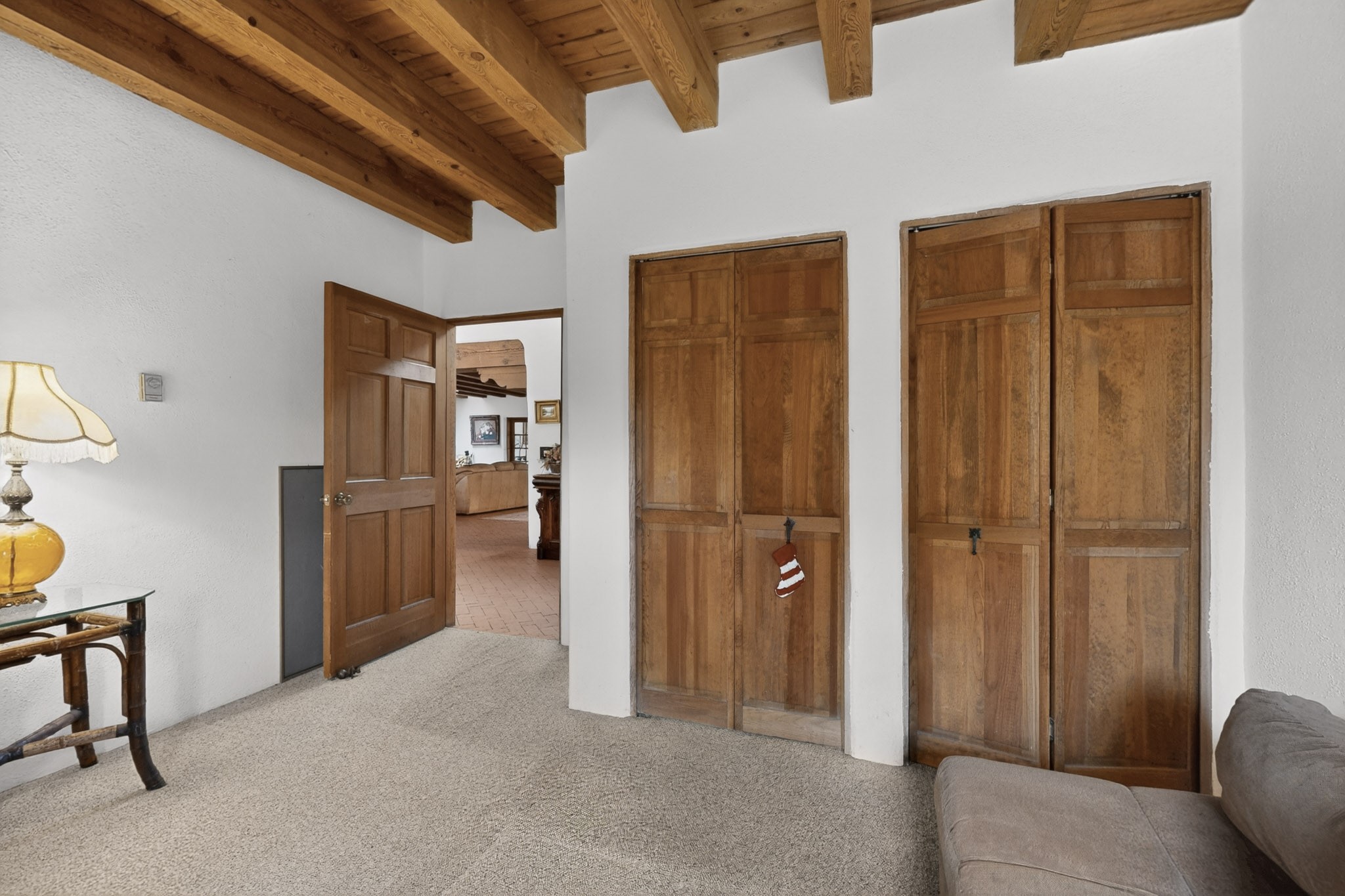 Bring your horses to this pinon and juniper covered Santa Fe County property close to town! The 10 acre parcel in Los Cerros Negros includes a main house, guest quarters, horse facility and is only 8 miles to the Santa Fe Plaza. The Southwest inspired house and guest quarters feature beautifully handcrafted wood throughout. The air conditioned main house has 3 bedrooms, 3 bathrooms and a sun room. The guest quarters has 2 bedrooms, 1 bathroom and an office. Your green thumb will be delighted with the large sun room in the main house where something can be blooming year round. The guest house could be a mother in law quarters or even an income producing property since it has its own entrance. There is abundant storage with many closets, a pantry, storage area off the covered portal and additional storage in the oversized well house.The horse barn situated away from the house includes a tack room, hay storage and 4 large stalls. Despite the country setting you are minutes away from Harry's Road House, Jambo Bobcat Bite, Cafe Fina and the Eldorado Supermarket. Just down the road is historical Santa Fe with its many dining options, art galleries and museums.