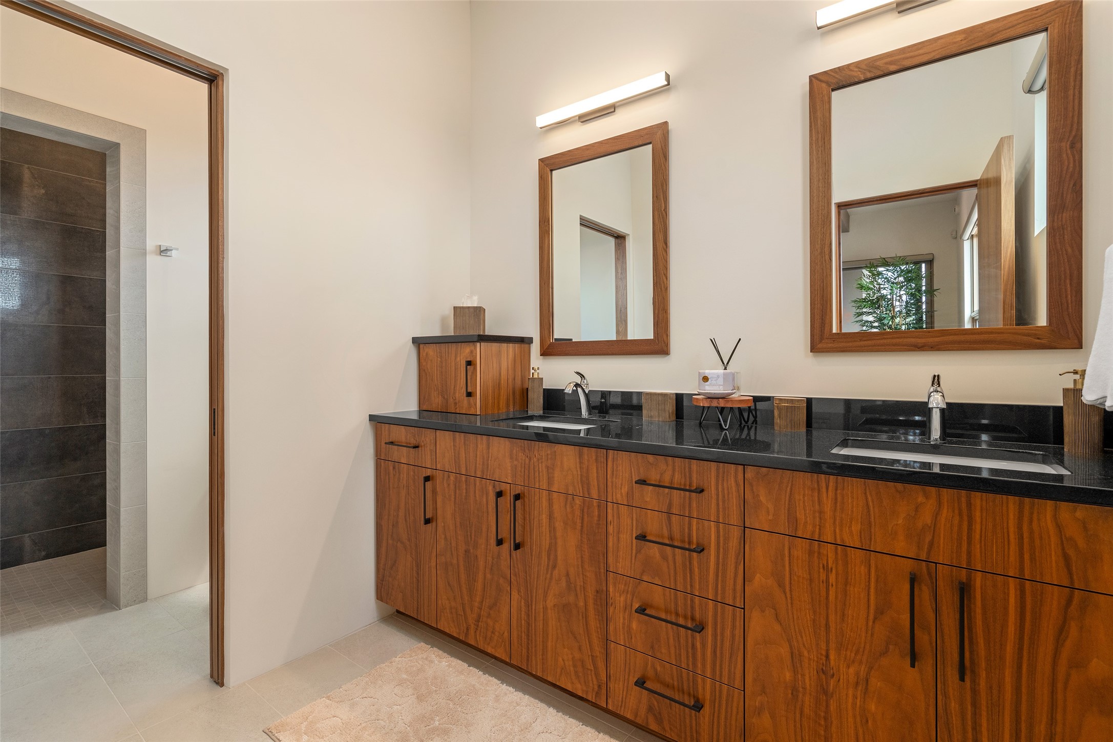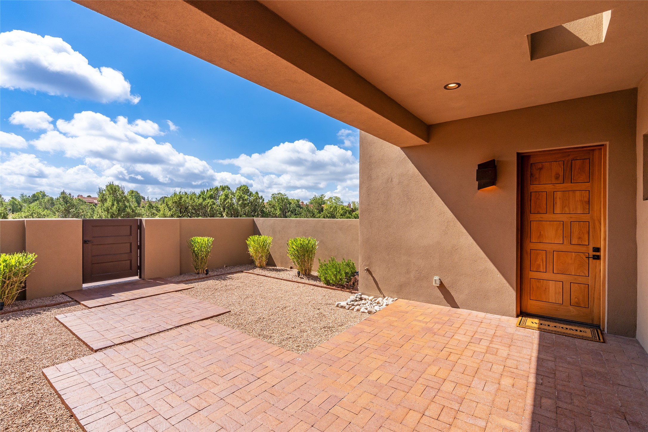 This nearly new soft contemporary home captures the essence of modern Southwest living. Set on 1.7 acres with unobstructed views of the Jemez, Sandia, and Sangre de Cristo mountains offering unforgettable sunsets and a seamless blend of indoor and outdoor spaces. Clean lines, soaring ceilings, three fireplaces, top of the line appointments, including Wolf dual ovens, and Sub-Zero refrigerator define the spacious open floor plan, making this the perfect dream home for the most discerning buyer. Built by award-winning builder Rick Driscoll, the residence offers an owner's retreat with fireplace, a second ensuite bedroom, and an attached casita with its own entrance and mini kitchen. A fourth room for media/office provides added flexibility. All rooms have their own private portals offering sweeping views. The oversized three-car garage includes an attached artist studio, a separate workshop area with new built-in cabinetry and a separate storage area. Modern systems recently installed to enhance everyday living include a water softening system, dual reverse osmosis systems, humidification system, motorized/retractable Hunter Douglas blinds, and a Sonos audio-visual system throughout the home. Updated landscaping and a newly paved brick driveway complete the exterior to welcome you to the home. The sale includes the washer and dryer, two refrigerators, and a separate freezer, making this extraordinary home ready to enjoy from day one. Private, thoughtfully designed, and surrounded by panoramic mountain views, it is a rare find in Northern New Mexico. Beautiful!!!