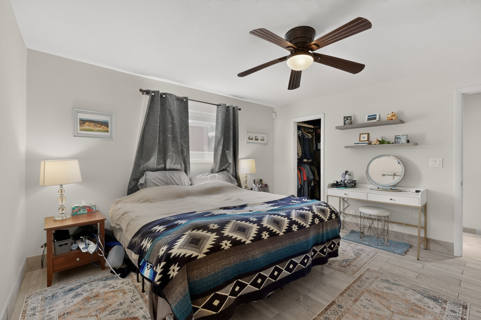 Welcome to Via Caballero, a highly sought-after neighborhood, known for quiet living and oversized lots in a centralized location. This home has been renovated with a new Solar system, new flooring, new windows, new stucco and roof, new skylights, a beautiful new kitchen with a built-in Miele coffee station and lots of storage, along with updated bathrooms - all within the last 5 years. The sellers have installed a new dishwasher, refrigerator, washer and dryer. To add to the amenities, you have a 884 square foot RV garage with 3 bays that is heated for any work or play that you want. There is good separation between the primary bedroom and the other bedrooms and lots of living space with a living room and a family room. The kitchen, dining room and breakfast nook have an open concept and adjoin the family room. The backyard is completely enclosed with a stucco wall and has an outdoor kitchen with a built-in range and storage. A new hot tub and outdoor fountain for your enjoyment are in the privacy of the covered patio in your backyard. The house is completely powered from the new solar panels that have been paid for. This property has so much to offer - all in a great location with lots of space to make it your own at a great price!