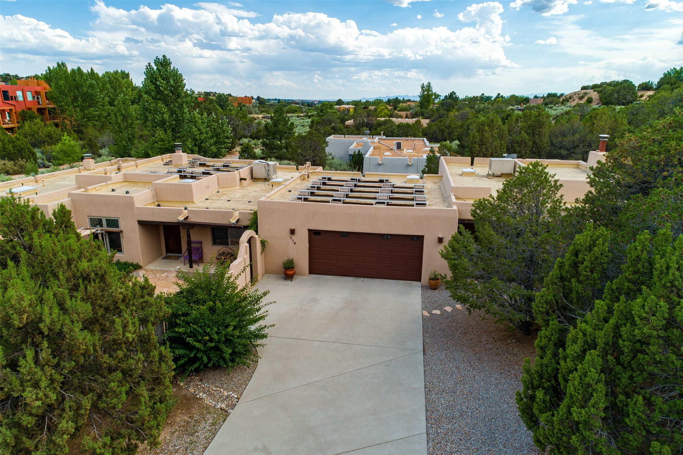 The northwest of Santa Fe within city limits includes one of the most affordable, family areas – Casa Solana. With beautiful mature trees, sidewalks and paved streets, Casa Solana has a real neighborhood atmosphere. Gonzales Elementary is within walking distance to all and the Casa Solana shopping area is a treat. The homes were built in the 1960’s by developer Allen Stamm and all include vigas, hardwood floors, fireplaces and solid construction. As you travel down West Alameda , the homes begin to spread out a bit. Horse farms dot the landscape. Newly-constructed homes appear on large open tracts. Any left hand turn takes you down to the Santa Fe River and any right hand turn delivered you into the hills above Santa Fe. Some lots in the hills offer 360 degree views, some a beautiful view of the Santa Fe city lights. Includes Zocolo and Santa Fe Estates.