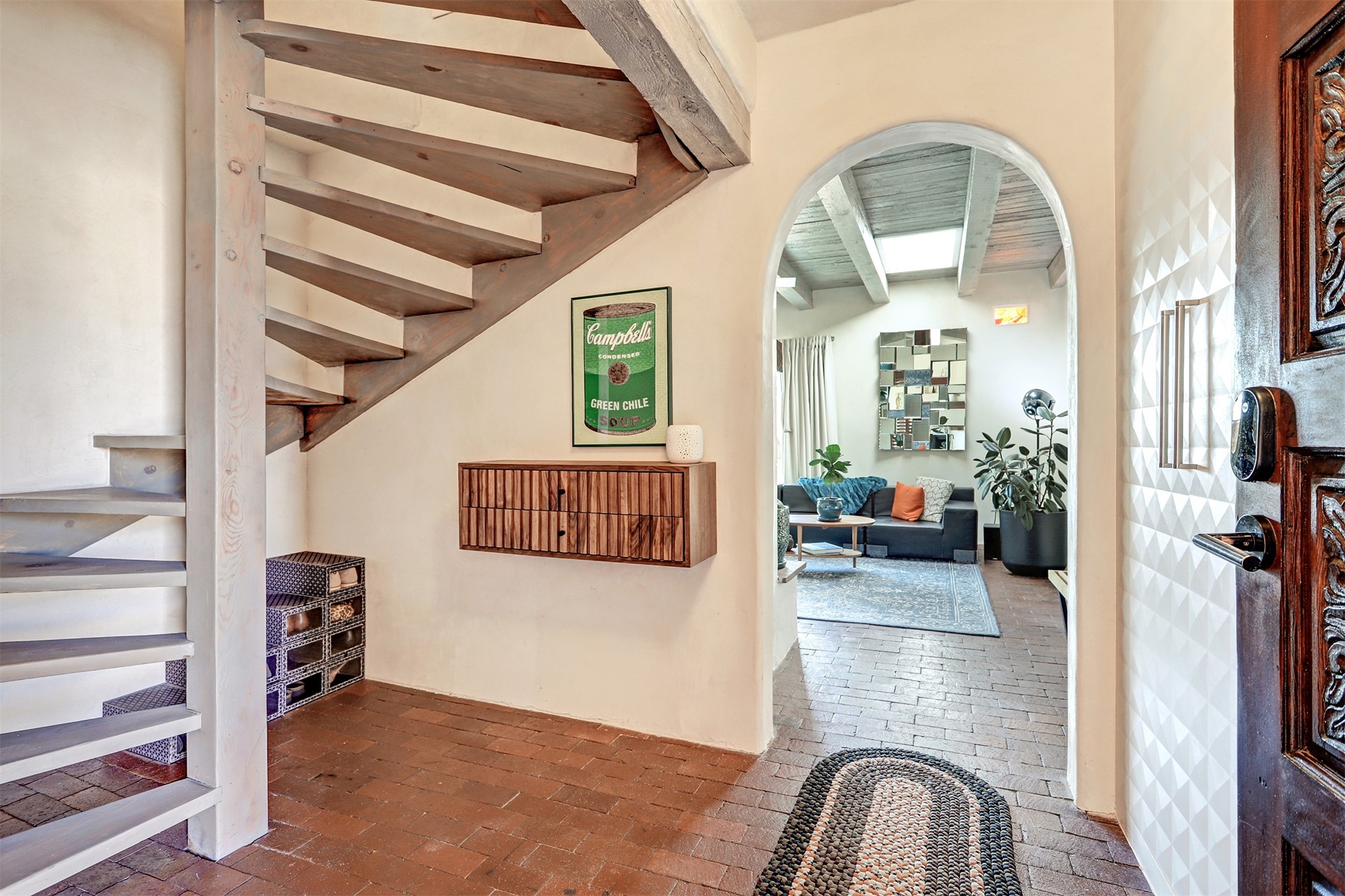 Bordered on the east by the ancient Santuario de Guadalupe, the end of the Camino Real, and in the west by St. Francis Drive, this little neighborhood is a collection of beautifully-renovated adobes and up-and-comers. The lots are small and tidy. Short walking distance from the Plaza, the Rail Runner train station, shops and a quaint movie theater.